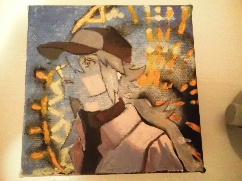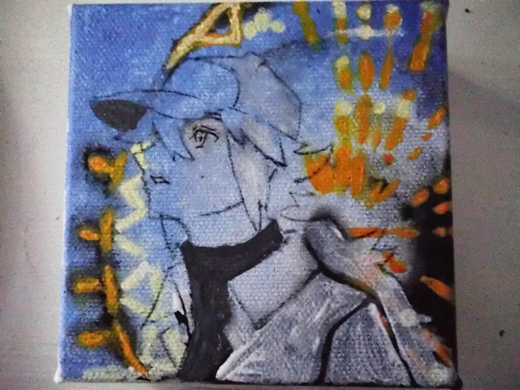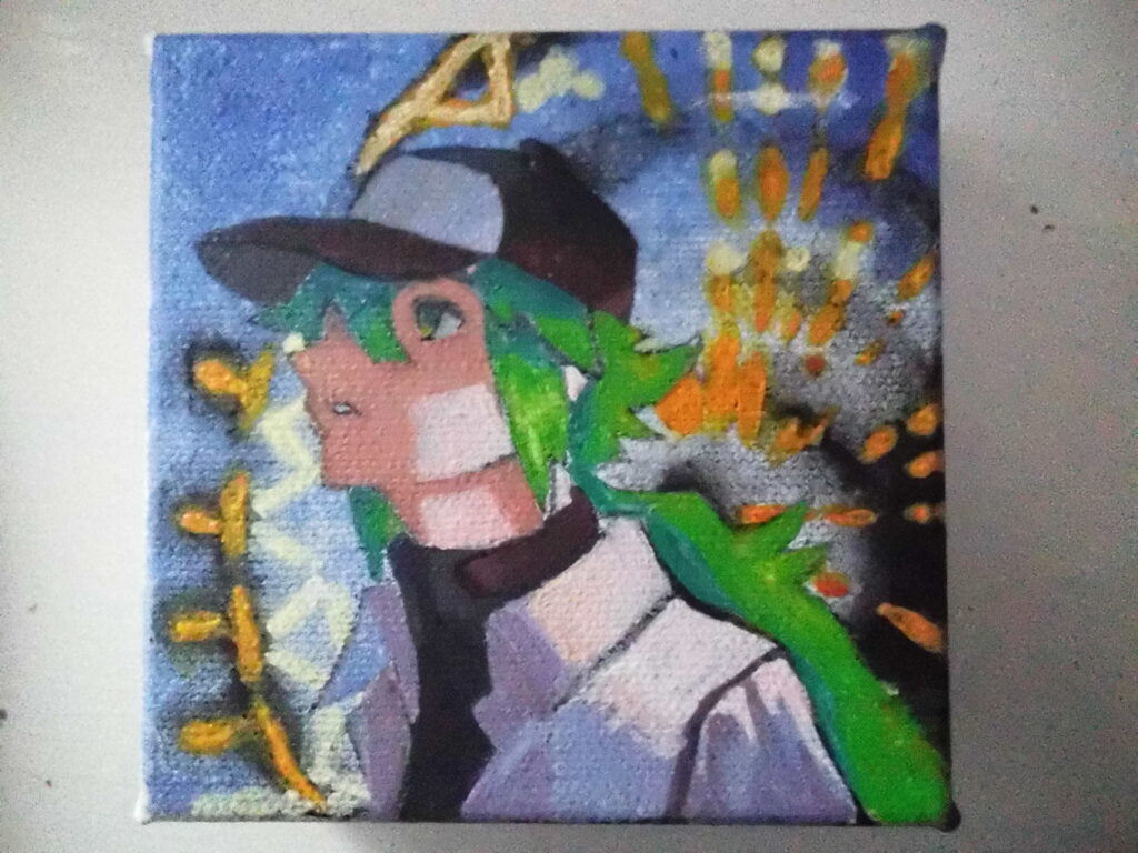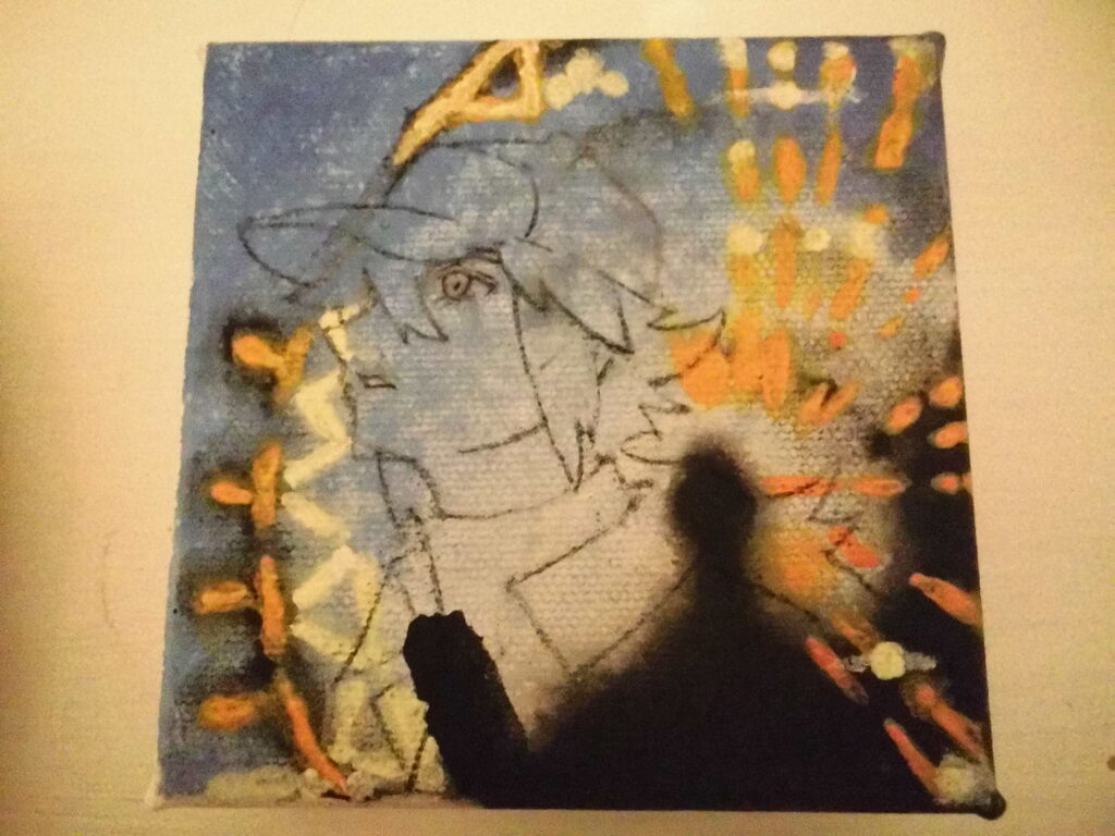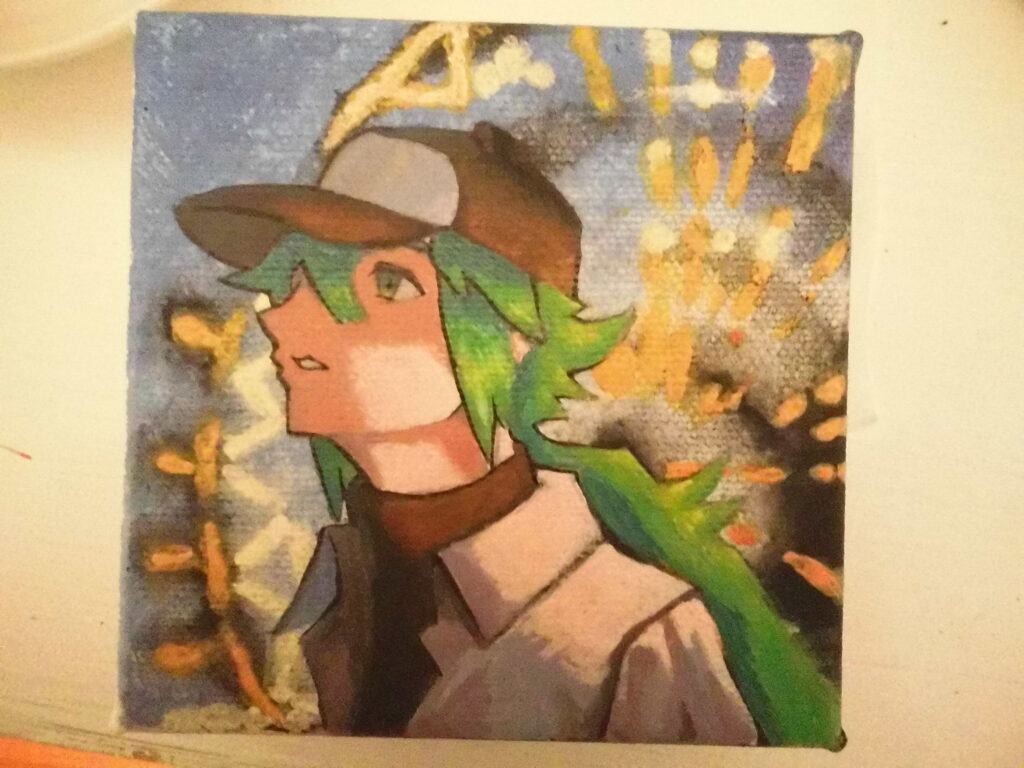 I painted the background of the card, and I also sketched N. So, I can transfer it on the Canvas.